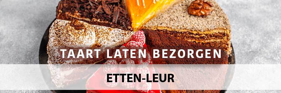Online taart bestellen kan bij verschillende online taartenbakkers als Taartenwinkel.nl en Ontwerpjedroomtaart.nl. Ook de lokale warme bakker heeft steeds vaker een eigen webshop. Ook bieden de lokale HEMA, Multivlaai en soms ook de PLUS, Albert Heijn, SPAR, LIDL, JUMBO, COOP supermarkt een ambachtelijke een gebakservice Etten-Leur.
