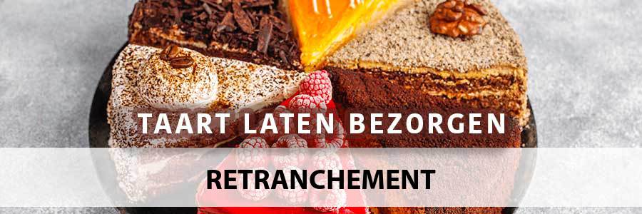 Online taart bestellen is mogelijk bij online taartenwinkels als Multivlaai.nl en Bakkerbart.nl. Ook de bakker op de hoek heeft soms een online bestelmodule en bezorgservice. Bovendien hebben ook de Multivlaai, HEMA en vaak ook de LIDL, COOP, ALDI, JUMBO, SPAR, PLUS supermarkt een ambachtelijke een gebakservice Retranchement.