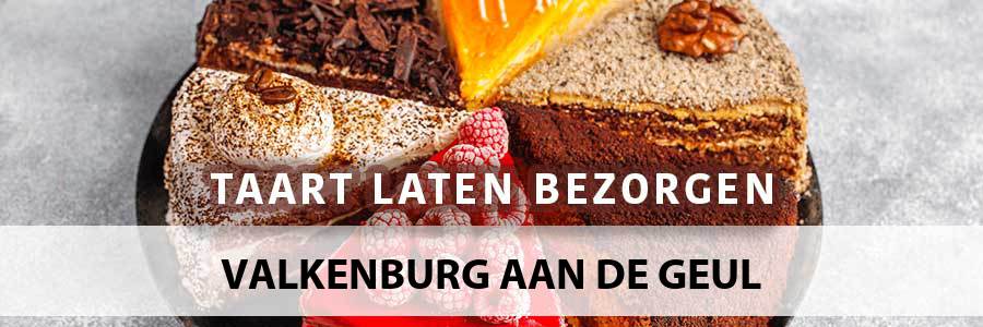 Online taarten bestellen is een optie bij online taartenwinkels als Jeeigentaart.nl of Taartbezorgers.nl. Ook de bakker om de hoek heeft steeds vaker een eigen webshop. Tevens bieden de plaatselijke HEMA of Multivlaai en soms ook de PLUS, COOP, ALDI, SPAR, Albert Heijn, JUMBO supermarkt een uitgebreide gebakservice Valkenburg aan de Geul.